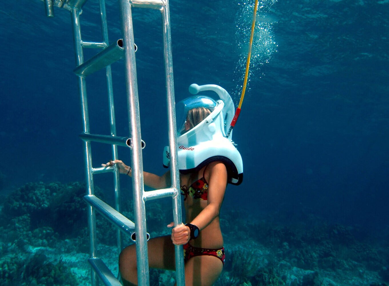 Seaquarium Punta Cana is an easy and fun way to get to know the world at the bottom of the sea: It’s as easy as walking and breathing underwater without getting your hair wet, putting on a helmet connected to an air outlet! You will discover an abandoned submarine, different species of reefs, and a great variety of colorful fish. You will also enjoy a fun party aboard a modern Catamaran with tropical music, drinks on board and live entertainment provided by our crew.